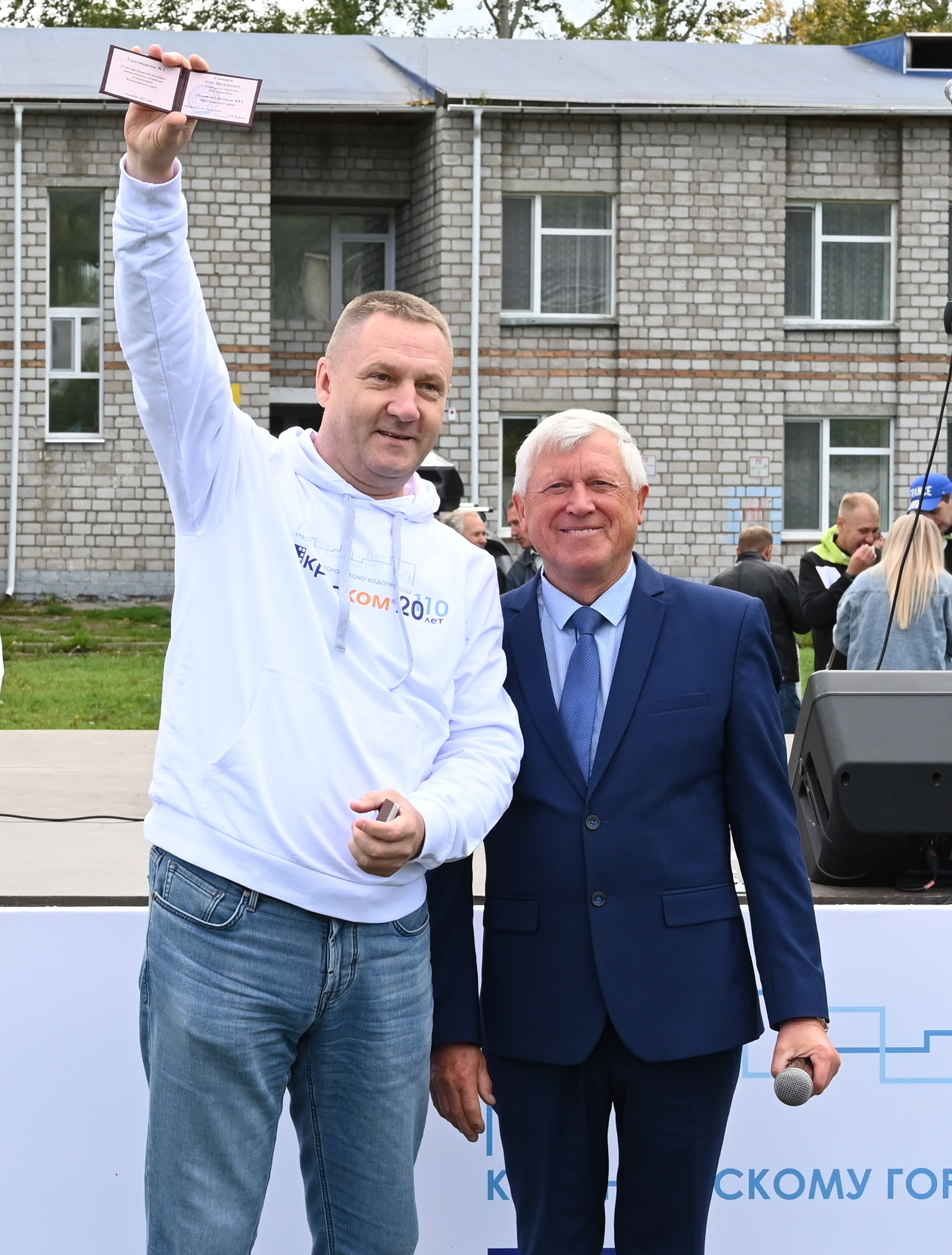 Исполнительный директор регионального «Союза предприятий жилищно-коммунального хозяйства и энергетики» Александр Андреев вручил генеральному директору КрасКом Олегу Гончерову удостоверение № 1 и знак «Почетный работник ЖКХ» Красноярского края. В системе ЖКХ Красноярска Олег Васильевич работает с 1995 года.