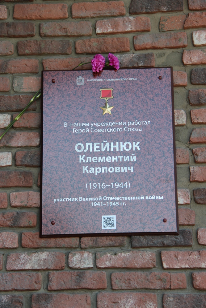 Решением наградной комиссии Красноярского края в 2015 году в канун дня победы на здании компании «КрасКом» был установлен мемориальный знак о том, что здесь трудился Герой Советского Союза Климентий Олейнюк.