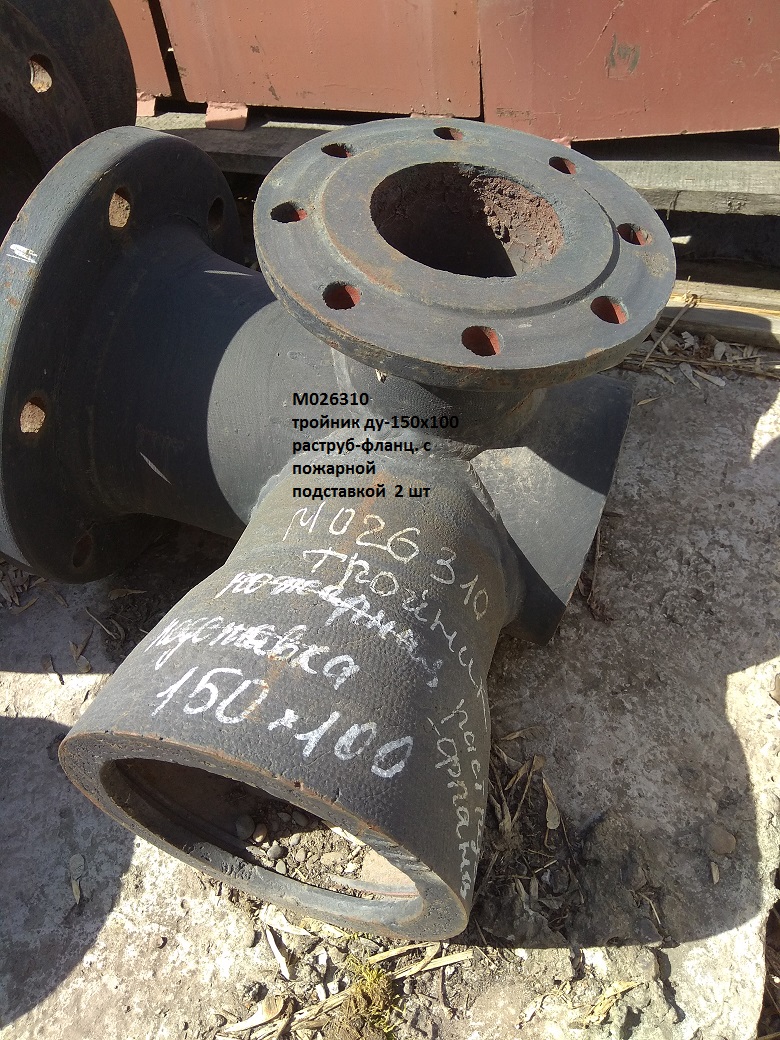 Тройник ду-150-100 раструб-фланец, с пожарной подставкой 2шт.; МО 26310