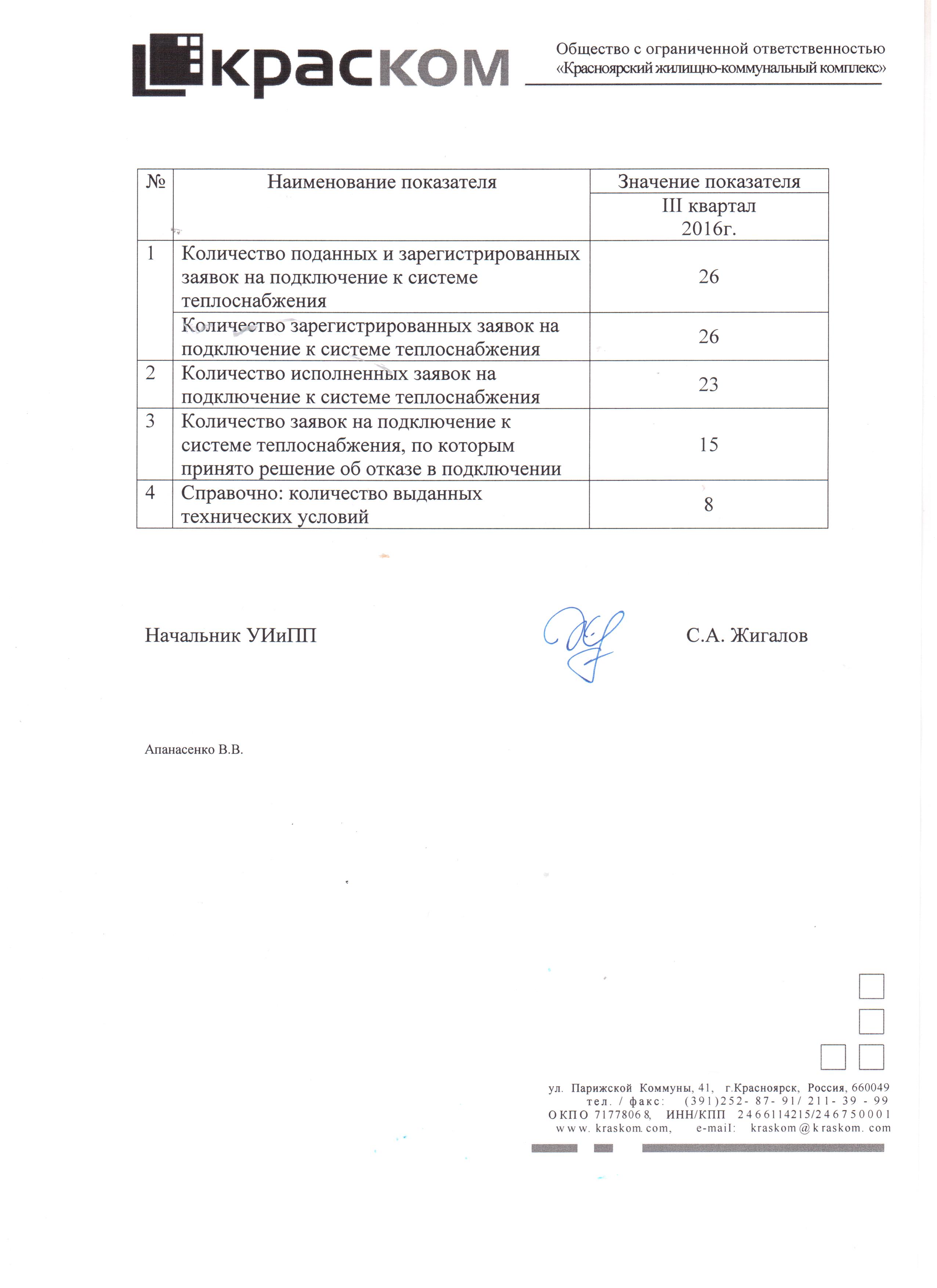 Информация о тарифах на услуги по передаче тепловой энергии ООО «КрасКом» на 2016 год