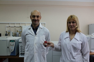 Ученые СФУ Михаил Иванович Гладышев и Надежда Николаевна Сущик с образцом биодизеля |
