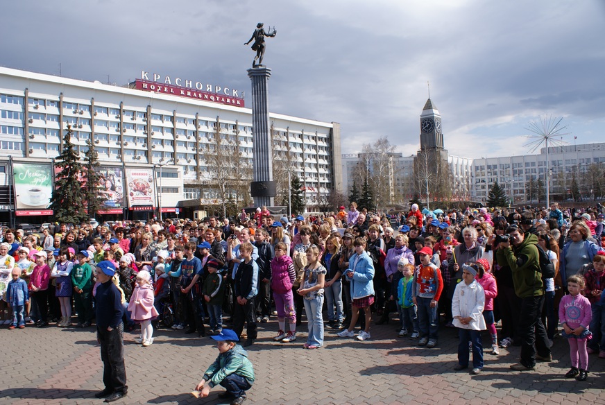 6 мая на детский праздник с весёлым названием «Ура! Фонтан!» пришли около тысячи юных красноярцев и привели с собой родителей, бабушек и дедушек. Более двух часов на Театральной площади длилась концертно-развлекательная программа, подготовленная при участии благотворительного фонда имени Людмилы Пимашковой и социально - реабилитационных центров Красноярска.