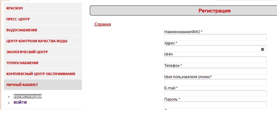 Порядок регистрирации на сайте www.kraskom.com в разделе «Личный кабинет»: