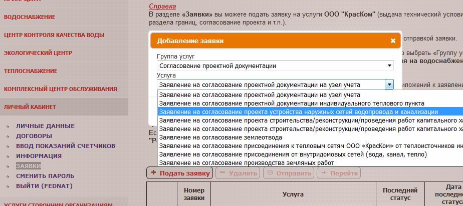 2. Подача заявки на услуги КрасКом (выдача технических условий, оформление акта раздела границ, согласование проекта и т.п.):