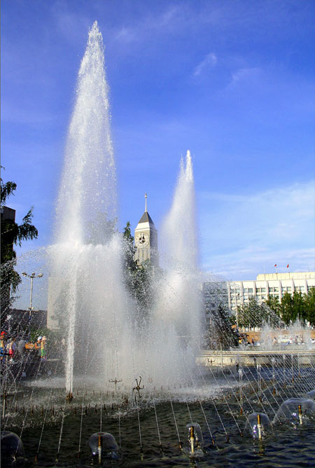 Водная картина будет меняться с учетом программы праздничных мероприятий, которые будут проходить у Театра Оперы и Балета.