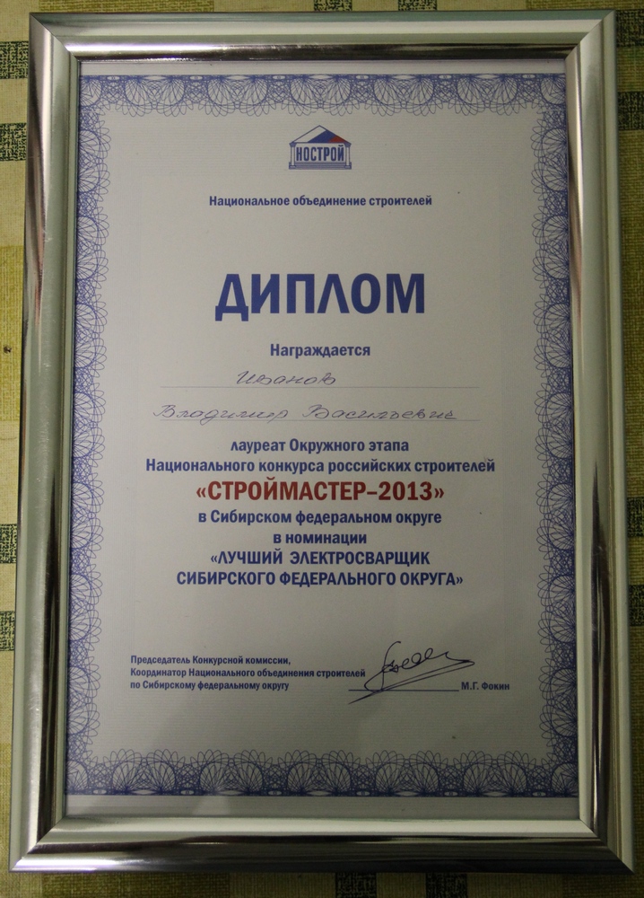 30 июля завершился окружной этап национального конкурса российских строителей «Строймастер-2013». По итогам двух дней соревнований, в течение которых представители семи регионов Сибири демонстрировали свои теоретические профессиональные знания и практический опыт, II место в номинации «Лучший электросварщик Сибирского федерального округа» досталось электросварщику VI разряда Владимиру Иванову.