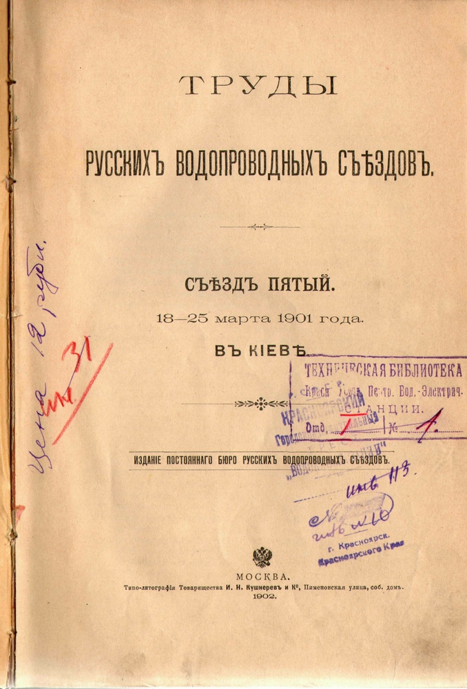 Материалы, безусловно, представляют большой интерес для мастеров водопроводной отрасли. Труды русских водопроводных съездов в настоящее время изучают специалисты Управления технического развития «КрасКом».