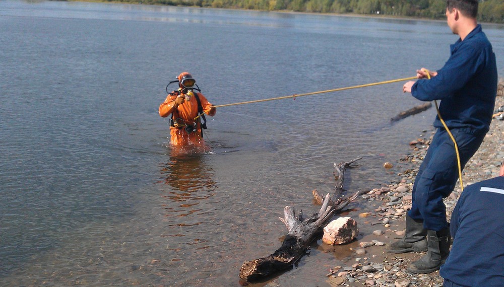Круглый год водолазам «КрасКома» приходится работать в постоянно холодной и мутной воде сильного течения р. Енисей, дно которого в районе города покрыто зарослями водорослей, а берега - кустарником. В таких сложных условиях специалисты участка подводно-восстановительных работ осматривают подводные коммуникации, определяют степень заноса труб донными отложениями либо вымывания грунта из-под дюкеров, в результате чего водовод оказывается без опоры, деформируется и может переломиться.