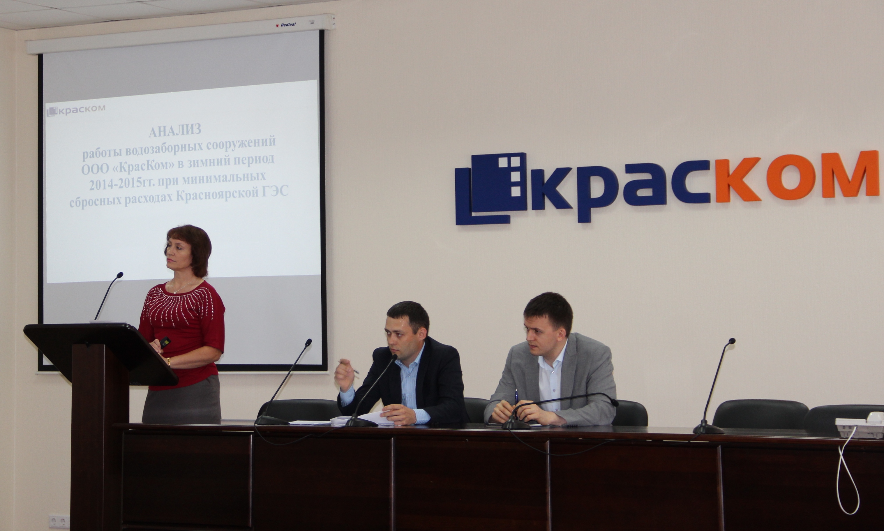 В компании «КрасКом» прошло выездное совещание по вопросу низкой водности в Енисее. Специалисты Енисейского бассейнового водного управления, министерства природных ресурсов и экологии, министерства строительства и ЖКХ Красноярского края, департамента городского хозяйства администрации Красноярска и компании «КрасКом» проанализировали работу красноярских водозаборов в период маловодной зимы 2014-2015 гг.
