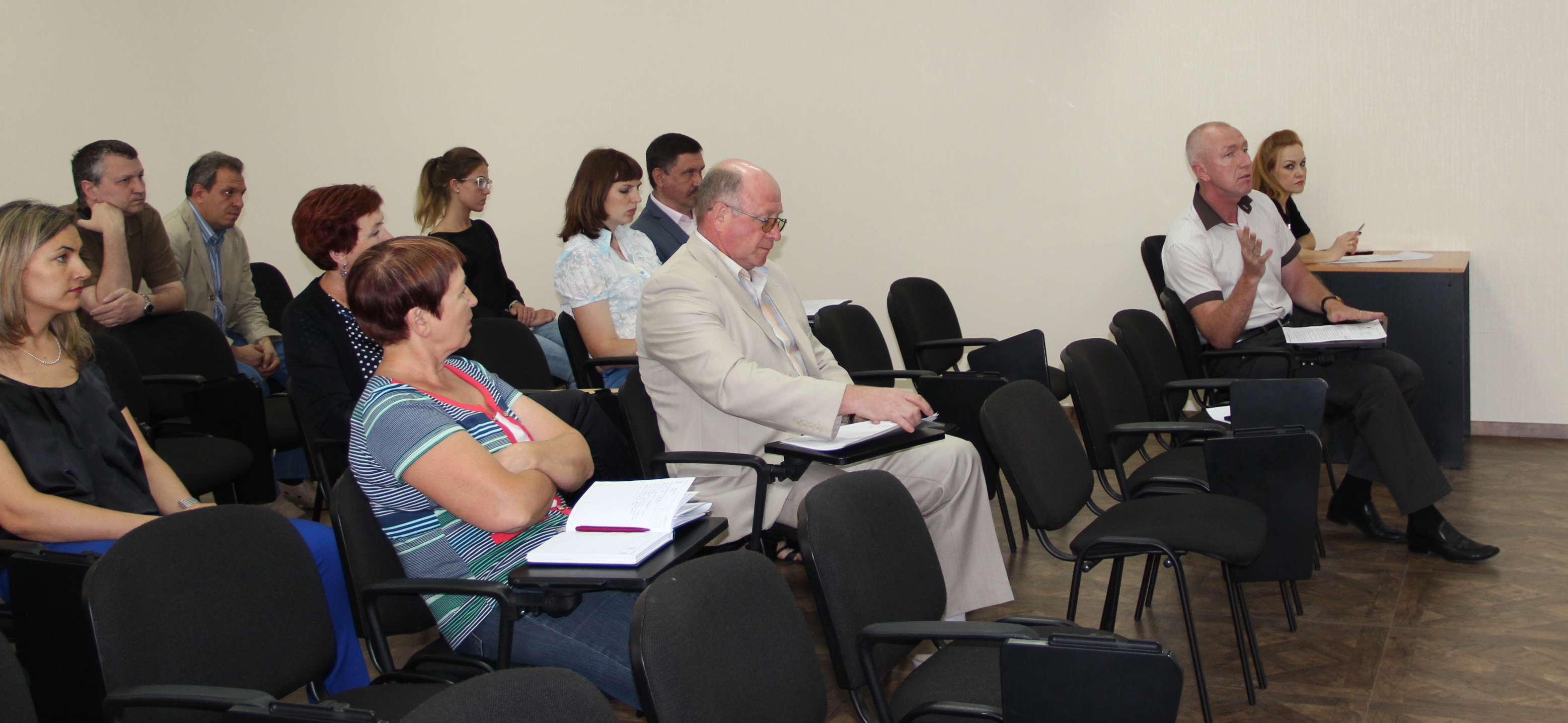 Ведущие совещания заместитель руководителя Енисейского бассейного водного управления С.В. Капустин и заместитель министра природных ресурсов и экологии Красноярского края Д.А. Еханин. Докладчик - начальник производственно-технологического отдела управления водоснабжения «КрасКом» Т.А. Еремева.
