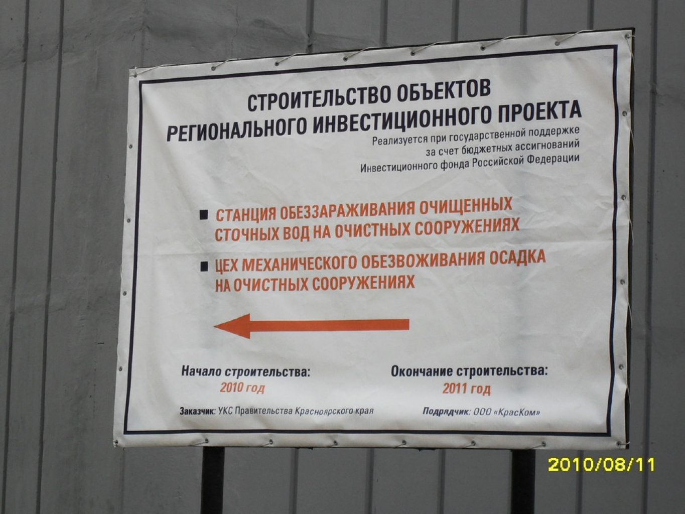 В 2010 году Цех механического обезвоживания осадка и Станция ультрафиолетового обеззараживания очищенных сточных вод введены в эксплуатацию. Перед сбросом в Енисей через станцию УФО проходят 100% нормативно очищенных вод, полностью соответствующих требованиям СанПиН 2.1.5-980-00 «Гигиенические требования к охране поверхностных вод».