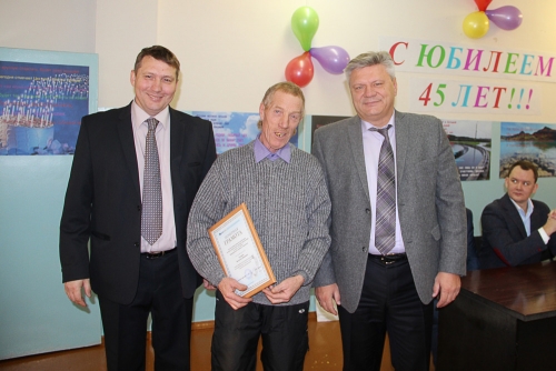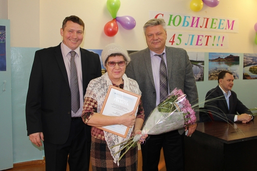 12 –го ноября состоялась торжественная церемония награждения лучших работников цеха за многолетний добросовестный труд и большой вклад в развитие производства. Благодарственное письмо министерства природных ресурсов и экологии края получила начальник цеха ПОС Киселевич Софья Федоровна, Благодарственные письма Красноярского Городского Совета депутатов были вручены слесарю аварийно-восстановительных работ Жильцову Владимиру Григорьевичу и машинисту насосных установок Щербаковой Ирине Борисовне. Церемонию награждения проводили председатель комиссии Горсовета Красноярска по ЖКХ и транспорту Аркадий Волков и депутат Городского совета Николай Шевчук.