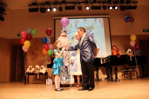 Награждение победителей и авторов лучших работ конкурс детского рисунка «С днём рождения, «КрасКом»!» прошло в Малом зале Академии музыки и театра. Подарки ребятишкам по традиции вручали Дед Мороз и Снегурочка.