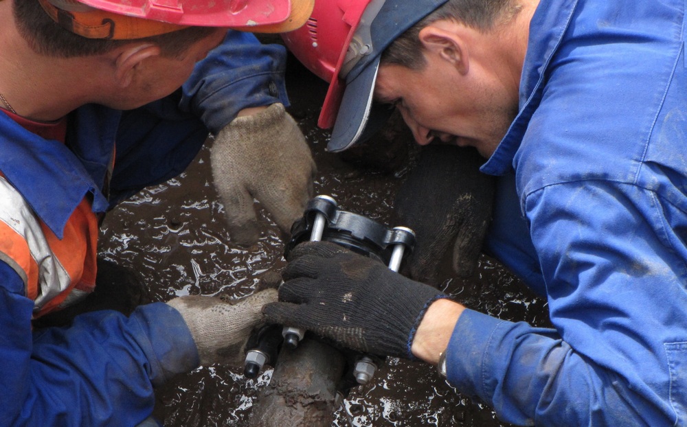 Водопроводные сети слесари аварийно-восстановительных работ ремонтируют и снег, и в дождь.