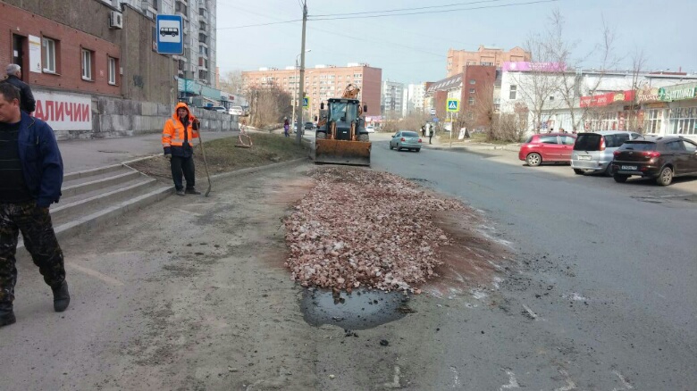 Сегодня место провала проезжей части очистили от мусора и обломков асфальта, сделали "подушку" из песчано-гравийной смеси, поверх которой положили щебень из скального камня. Для асфальтирования улицы после ремонта водопровода по технологии требуется определенный период, необходимый для усадки грунта.
