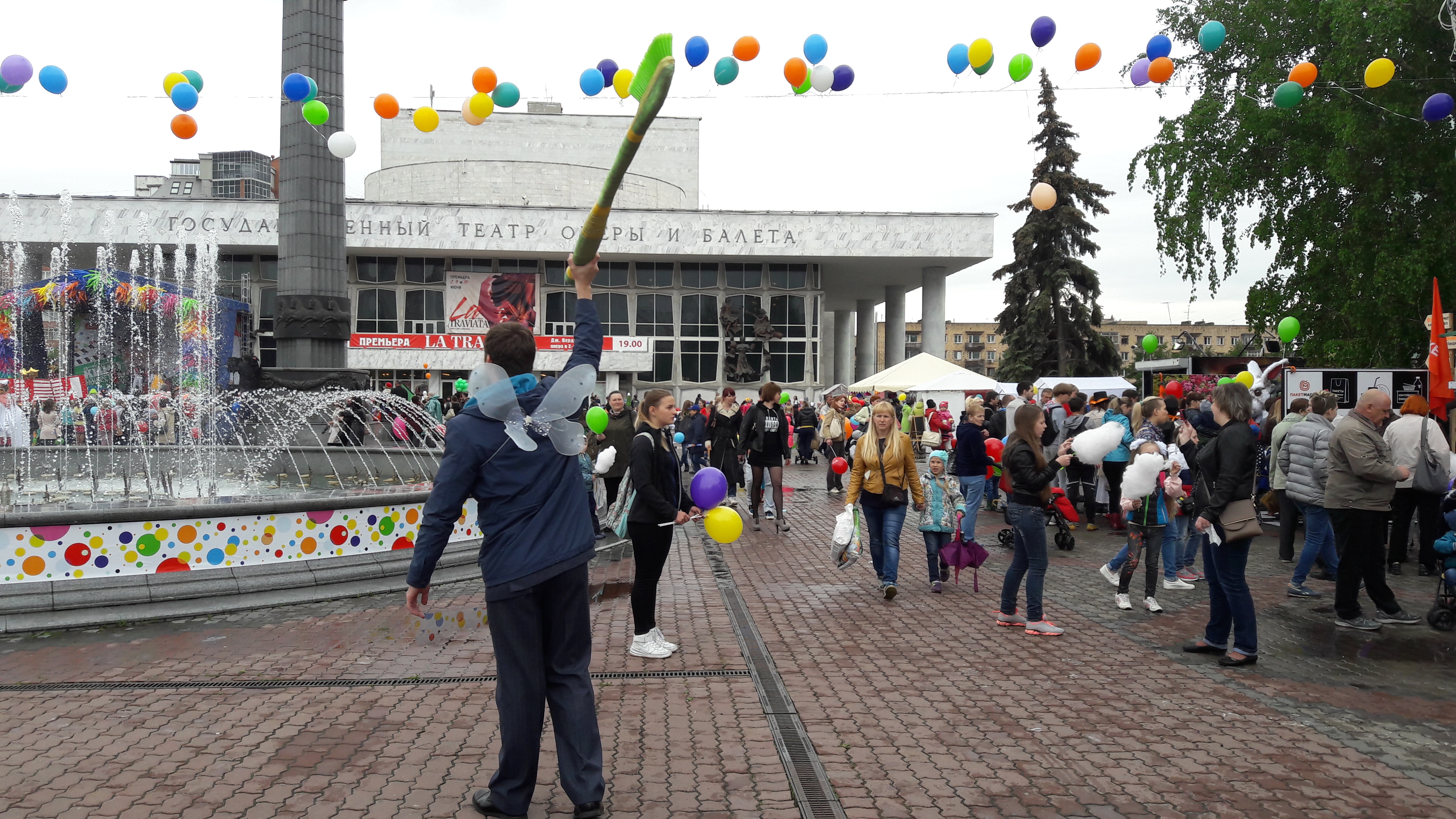 Водное сооружение органично вписалось в развлекательную программу «Большой детский день», которая проходит сегодня с 13:30 до 18:00 на площади у Театра оперы и балета.