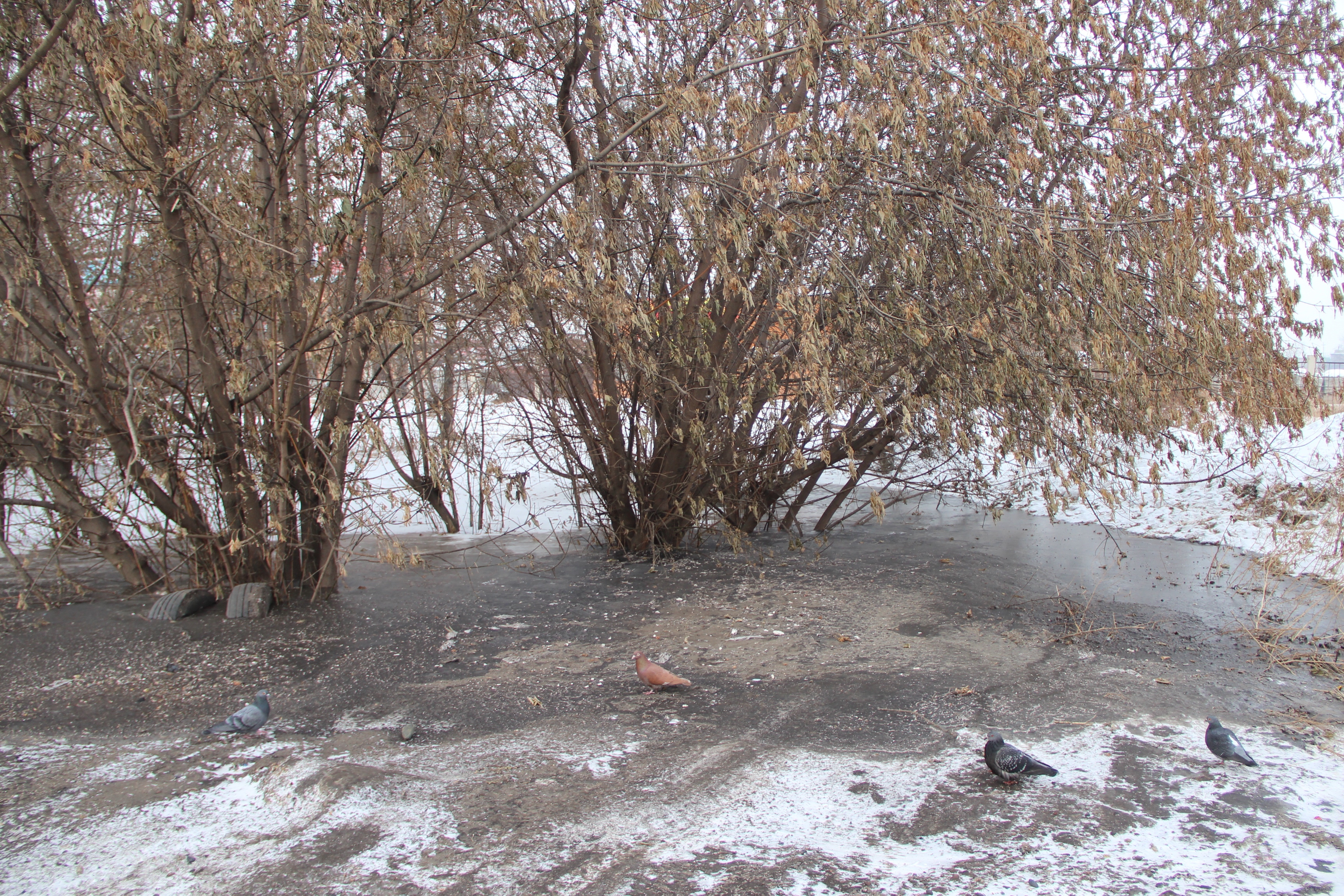 Нечистотами водители-ассенизаторы залили большую часть территории вокруг точки несанкционированная слива, превратив её зимой в каток, который с началом весны растает в зловонную лужу.
