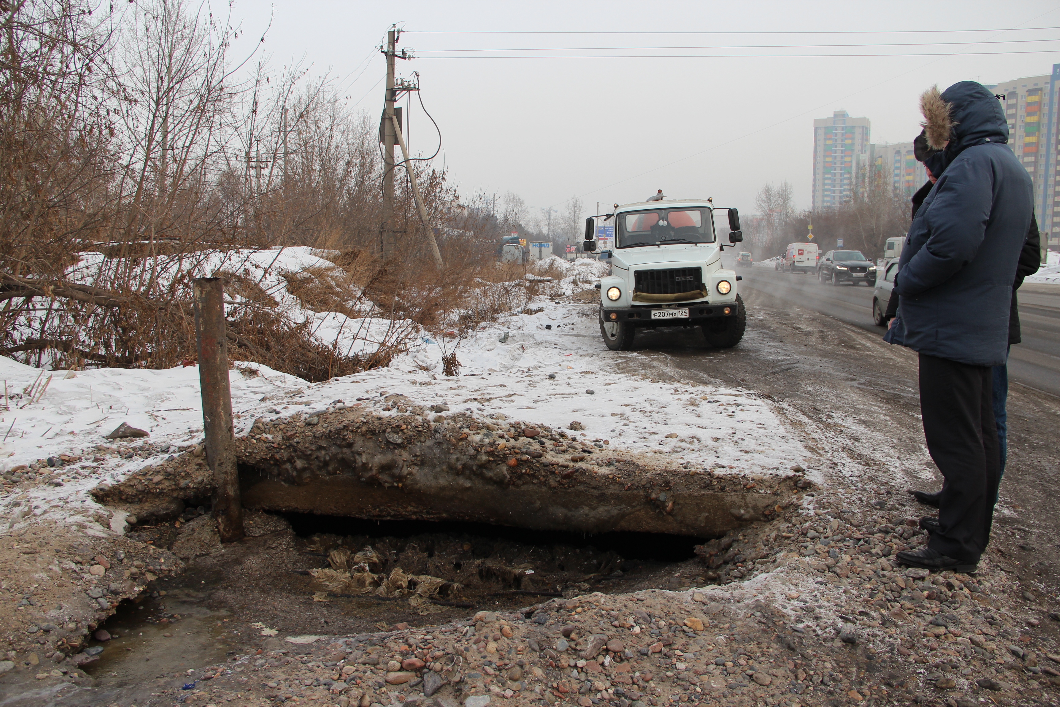 Одной из таких «популярных» точек слива среди владельцев ассенизационного транспорта является технологическая камера на магистральной сети водоотведения по ул. Караульной. По информации Центральной диспетчерской службы «КрасКом», жители микрорайона Покровский периодически сообщают, что у дома номер 38 по этой улице выстраивается вереница машин со специфическим грузом. Этот колодец находится на особом контроле в Цехе канализационных сетей, его специалисты предприятия закрывают еженедельно. Евгений Огородников рассказывает, что 23 января в 11.00 часов дежурная бригада не только закрыла люк железобетонной крышкой, но и засыпали его грунтом, а 24 января в 13.00 в ходе обхода сетей выяснилось, что предприимчивые граждане с помощью экскаватора разобрали конструкцию.
