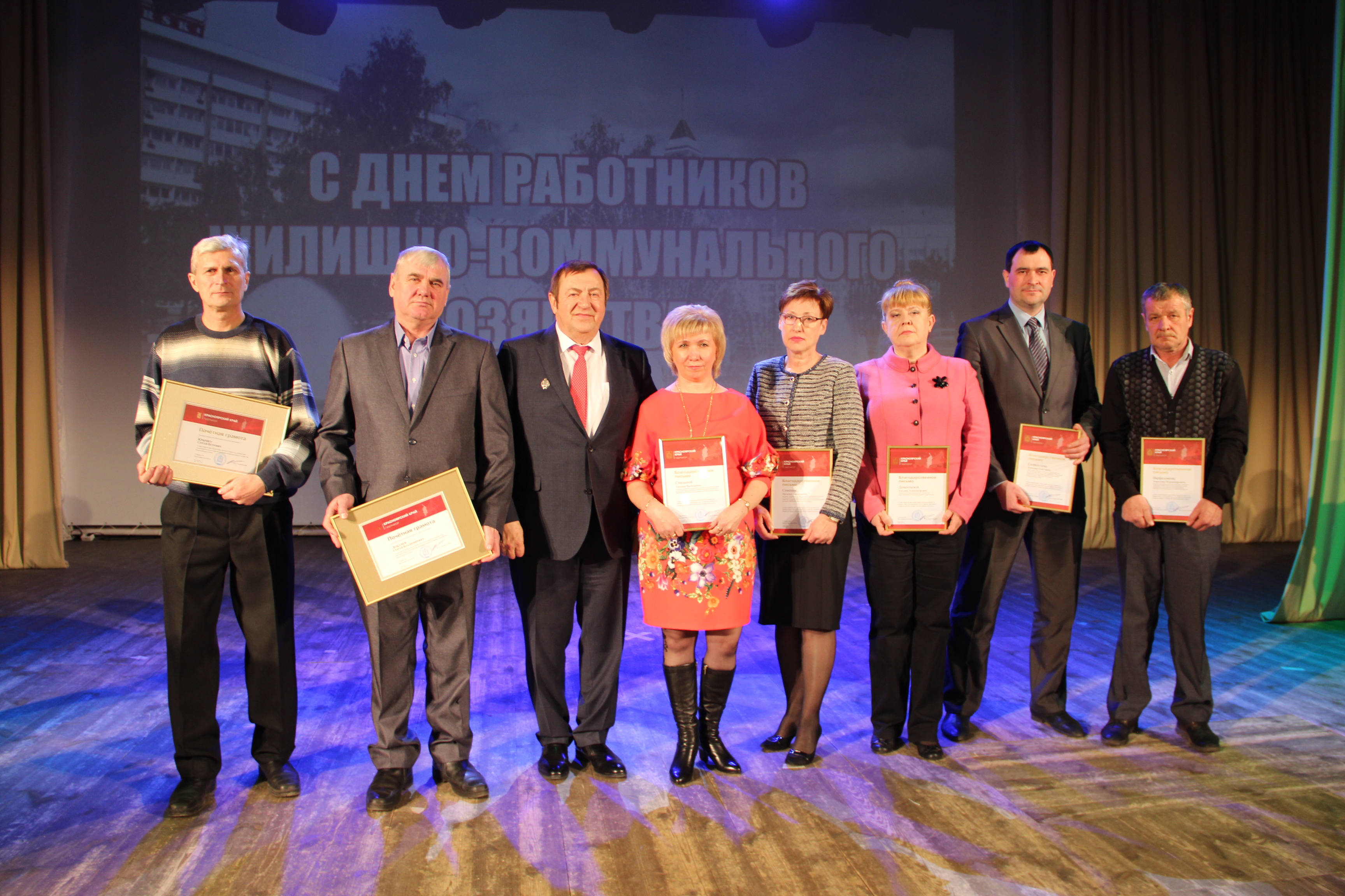 Всего к профессиональному празднику почетными грамотами и благодарственными письмами Губернатора Красноярского края, Главы города Красноярска, министерства строительства и ЖКХ, Законодательного Собрания, Красноярского городского Совета депутатов и департамента городского хозяйства был отмечен личный вклад в развитие системы жизнеобеспечения 23 «красомовцев».