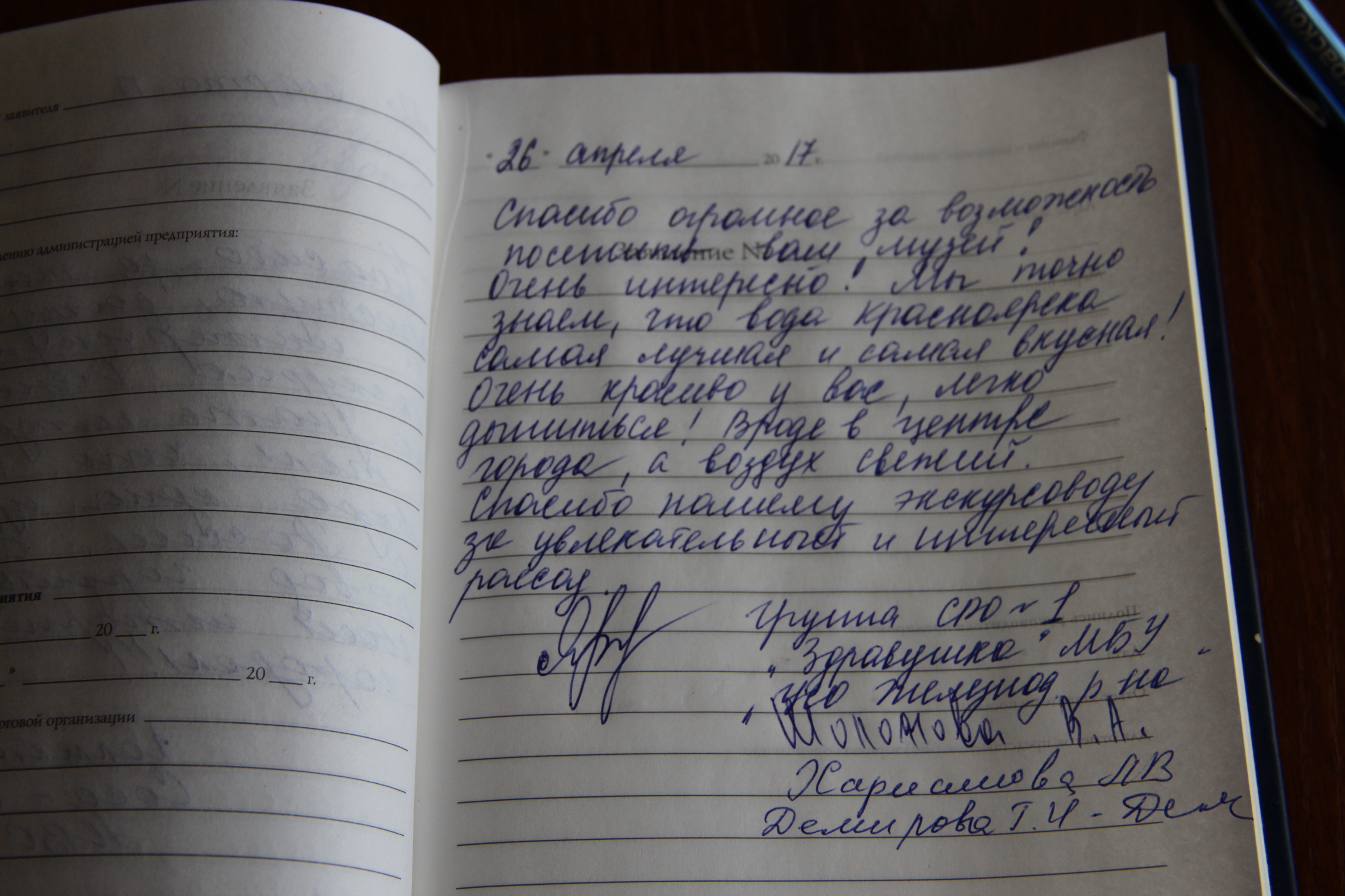 Покидая водозабор, экскурсанты поблагодарили за предоставленную возможность узнать историю города с новой стороны и пожелали сотрудникам компании «КрасКом» и дальше сохранять высокое качество питьевой воды, которое ей дано от природы, как это было сделано теми, кто создавал систему водоснабжения Красноярска.