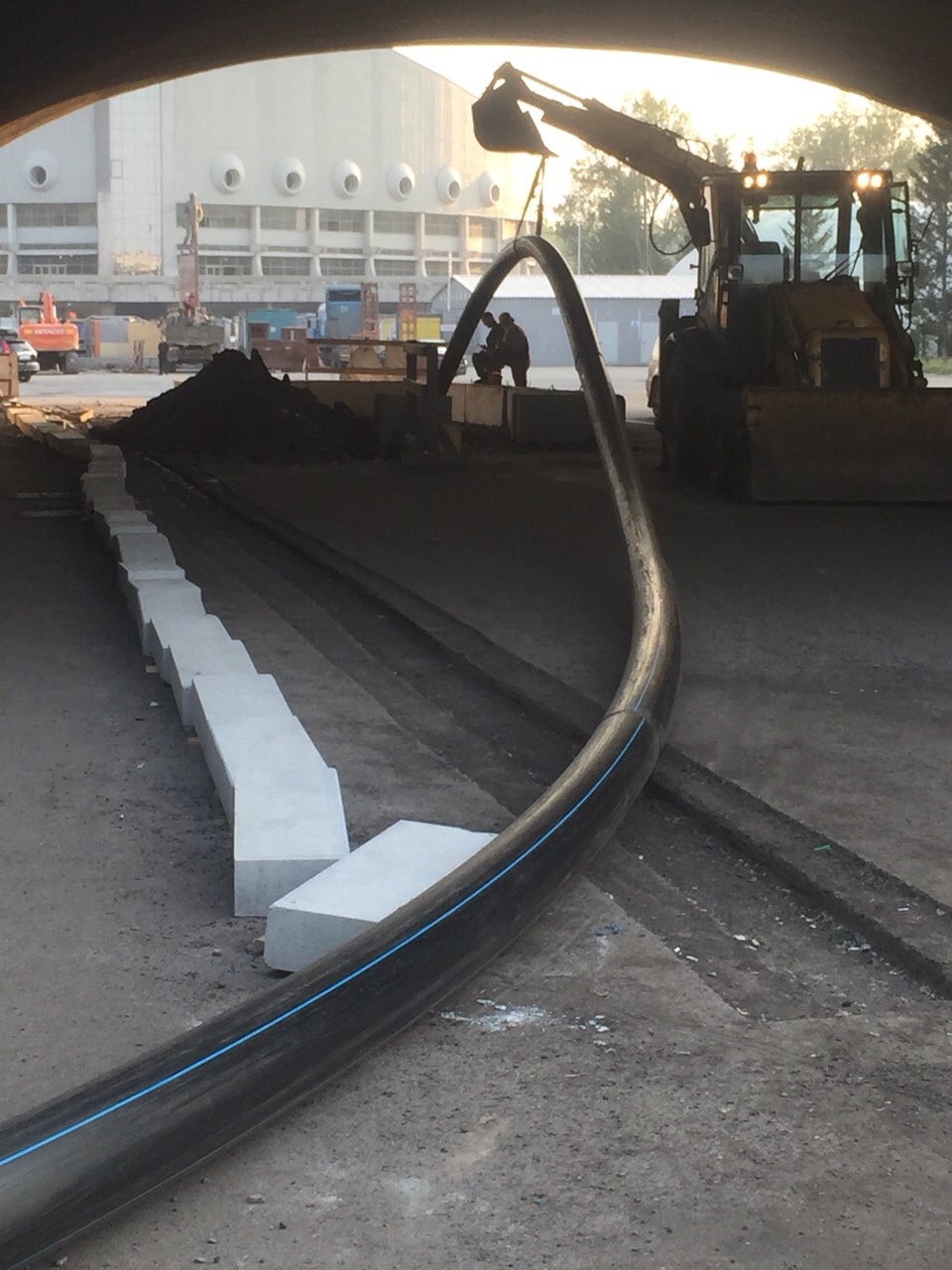 Чтобы не создавать автомобильные пробки в узком проезде под Коммунальным мостом, работали преимущественно по ночам. Полиэтиленовые трубы протягивали установкой горизонтально-направленного бурения (ГНБ). Это позволило вскрывать дорожное покрытие небольшими участками, которые сразу после завершения работ засыпали, грунт утрамбовали и уложили асфальт. Всего на о. Отдыха проложили 260 м сетей, которые обеспечат подачу дополнительного объема холодной воды, необходимой Центральному стадиону как для хозяйственных нужд, так и для обеспечения стабильной работы системы пожаротушения.