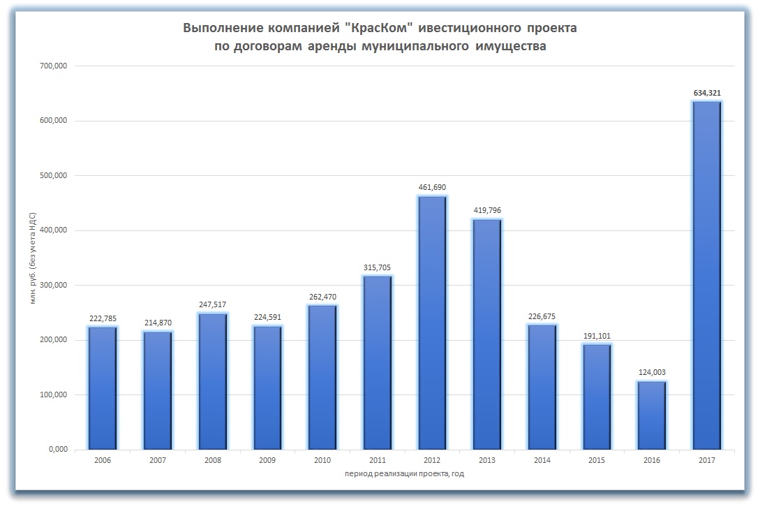 Годовой отчет о выполнении инвестиционного проекта «КрасКома» за 2017 г. на общую сумму 634,3 млн рублей прошел государственную регистрацию.