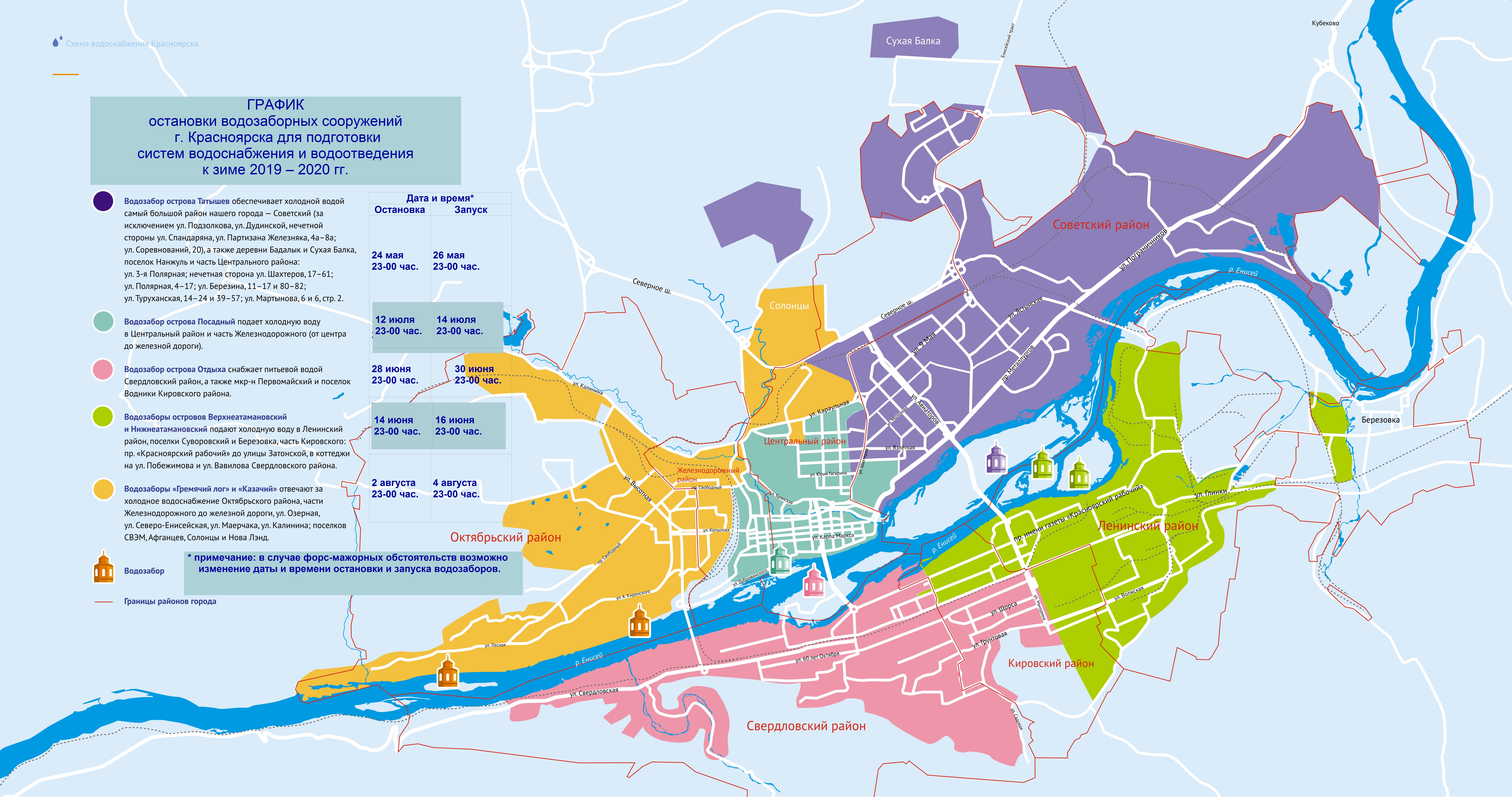 * примечание: в случае форс-мажорных обстоятельств возможно изменение даты и времени остановки и запуска водозаборов.