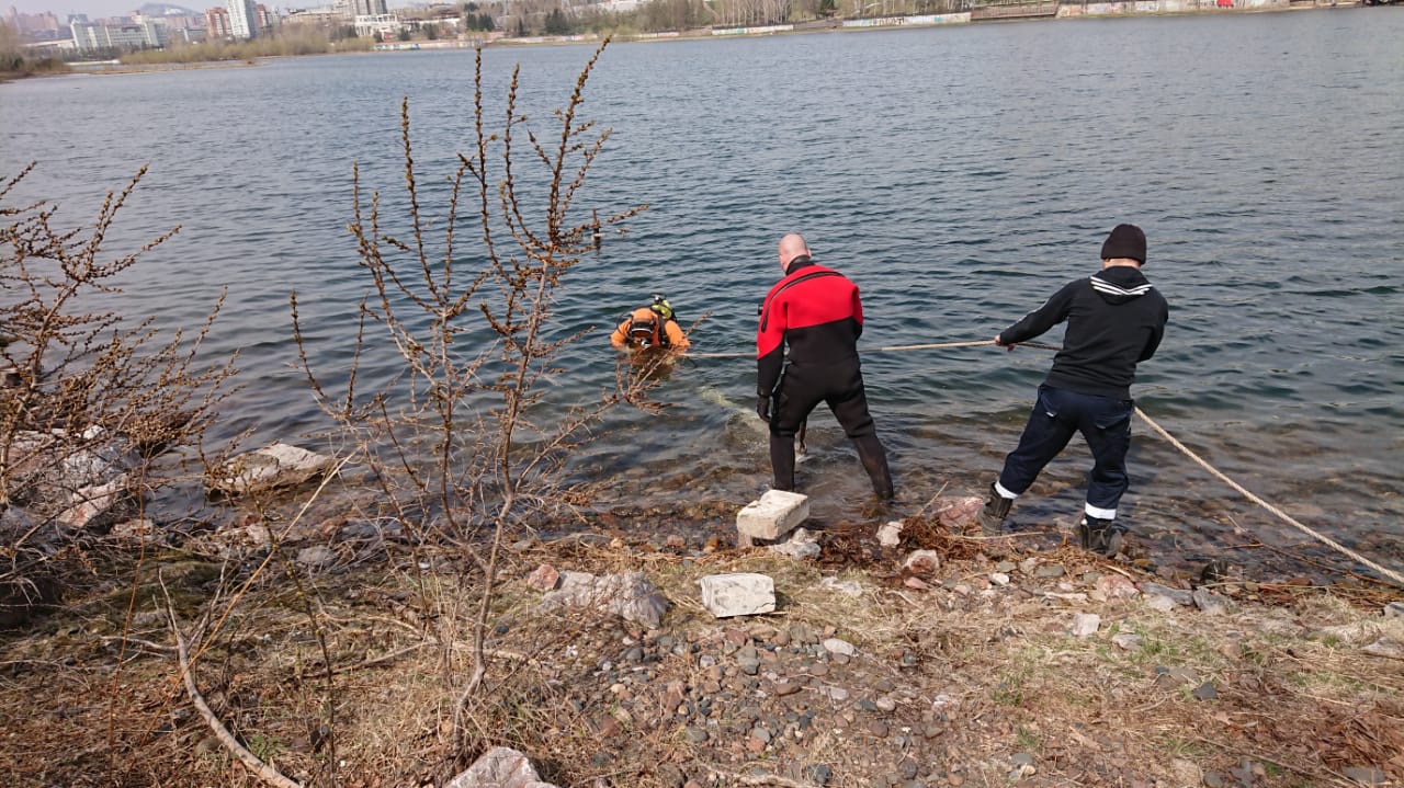 Сегодня водолазы завершили настройку водной картины речного фонтана компании "КрасКом" около острова Посадного