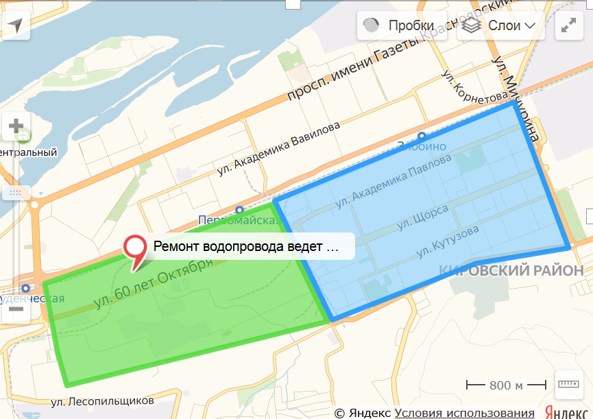 Сегодня с 11:20 часов до завершения работ по устранению повреждения на магистральном водопроводе на 60 лет Октября приостановлена подача холодной воды по следующим адресам:
