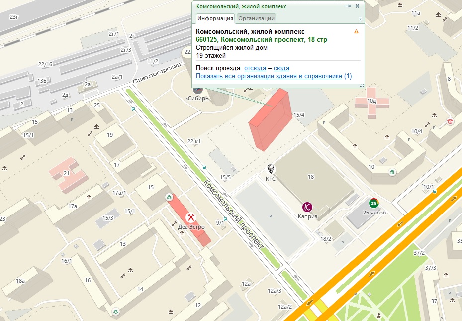 • пр. Комсомольский, 9, 15, 17, 17а, 19, 16 (офис);