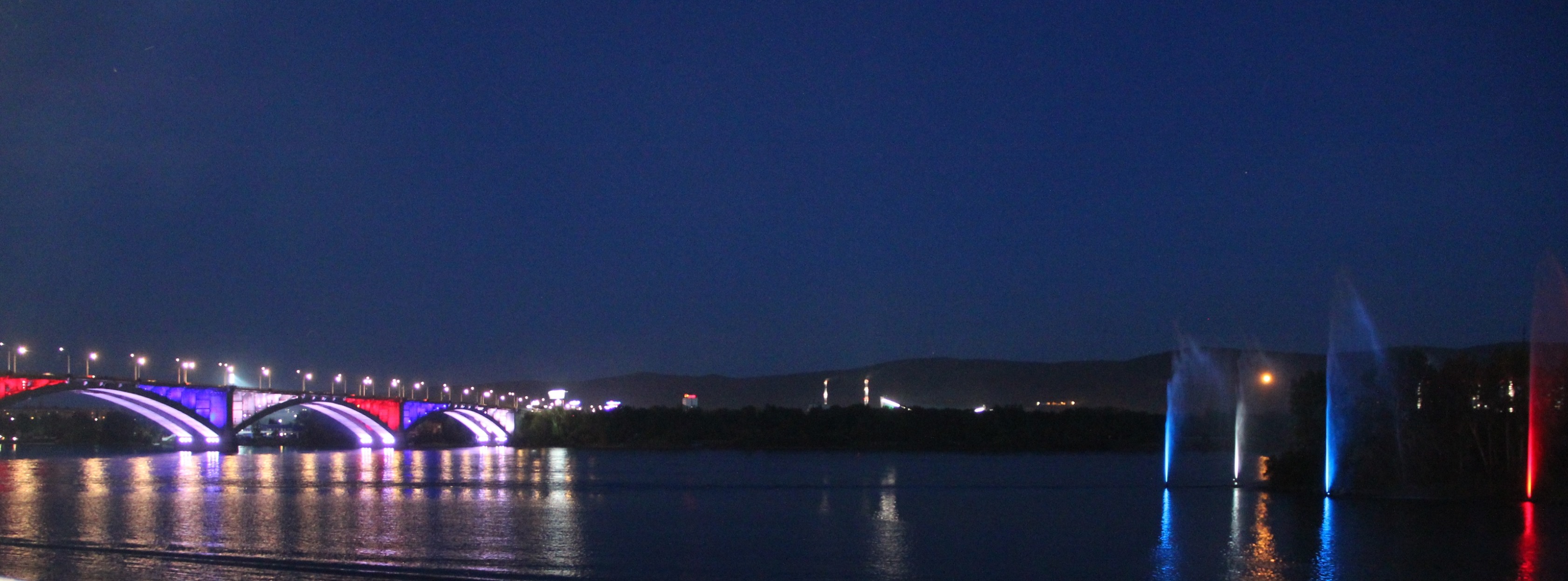 В до конца мая речной фонтан компании КрасКом будет работать каждую пятницу и субботу с 19:00 до 22:00. Подсветка в мае будет включаться с наступлением сумерек в 21:30.