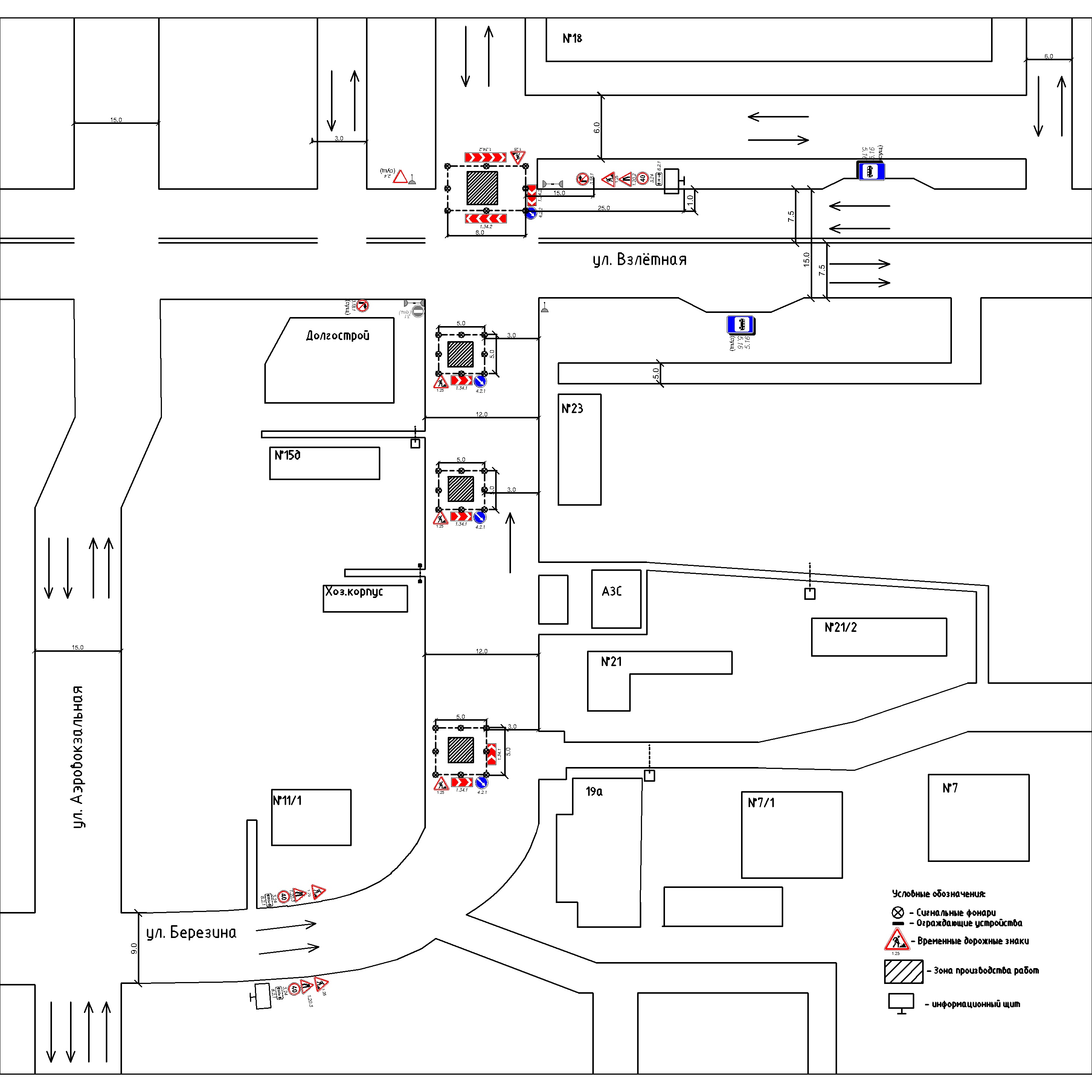 Для безопасного проведения земляных работ с 08:00 часов 8-го июля до 20:00 часов 3-го августа изменится схема движения транспорта по улицам: Березина, Аэровокзальная, Взлётная в районе Междугородного автовокзала.