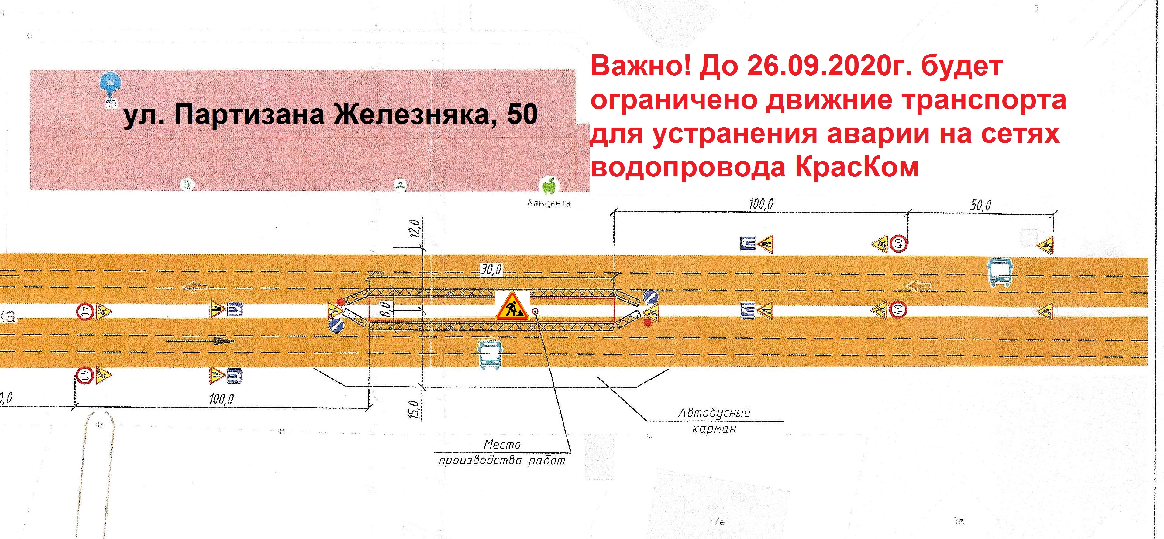 «КрасКом» продляет до 26 сентября срок устранения аварии на водопроводе на ул. Партизана Железняка, 50