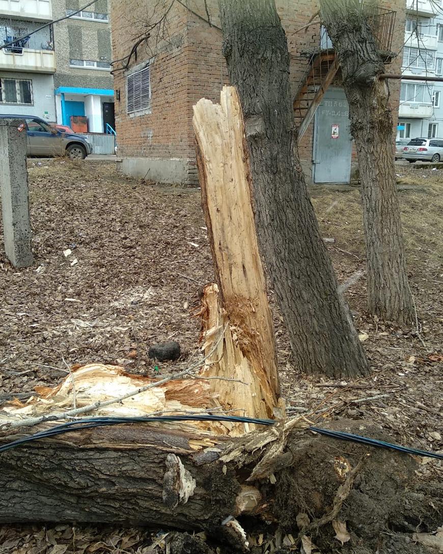 Основными нарушениями в работе систем электроснабжения, которые обслуживает КрасКом, стали обрывы проводов воздушных линий электропередачи. Например, на ул. Энергетиков, 61 сильным ветром переломило ствол старого тополя, который упал на электропровода между трансформаторной подстанцией и жилым домом. В итоге без света на три часа остались жители шести двухэтажек.