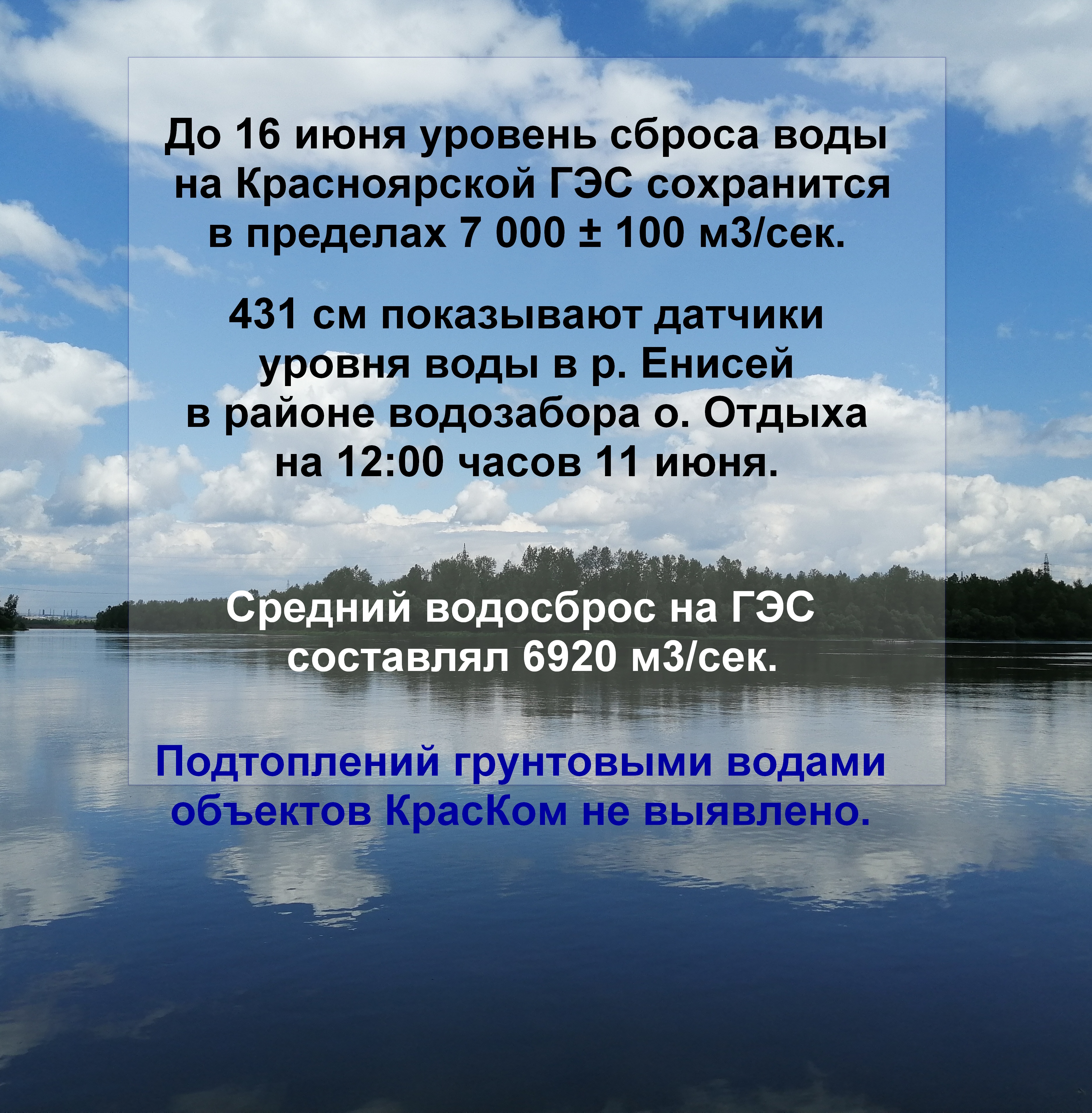 Напомним,что для водозаборов КрасКом критический уровень в р. Енисей составлеят 650 см.