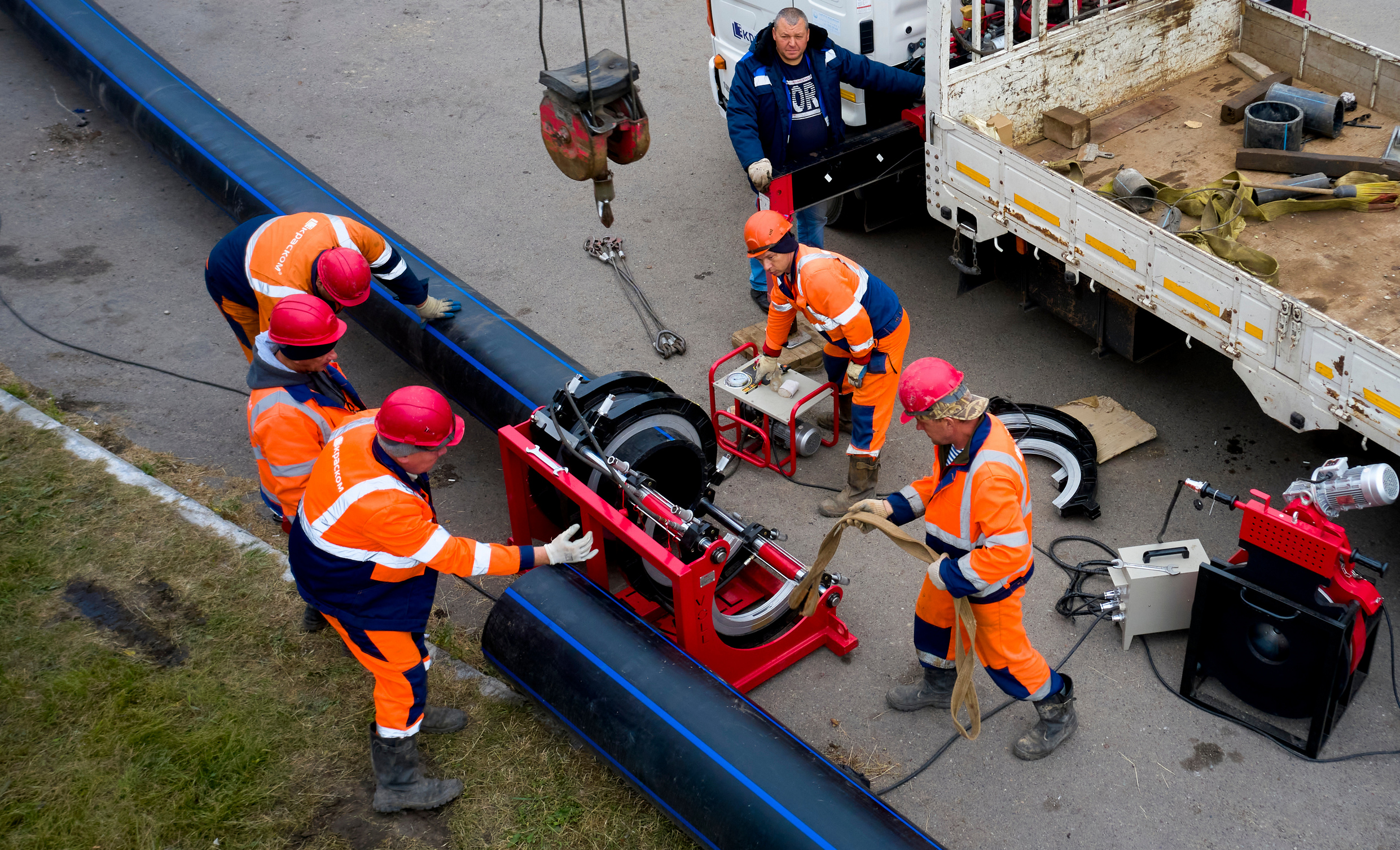 С помощью специальной буровой машины по технологии горизонтально-направленного бурения без разработки траншей проложили около одного километра новых полиэтиленовых труб от ул. Декабристов до ул. Диктатуры Пролетариата.