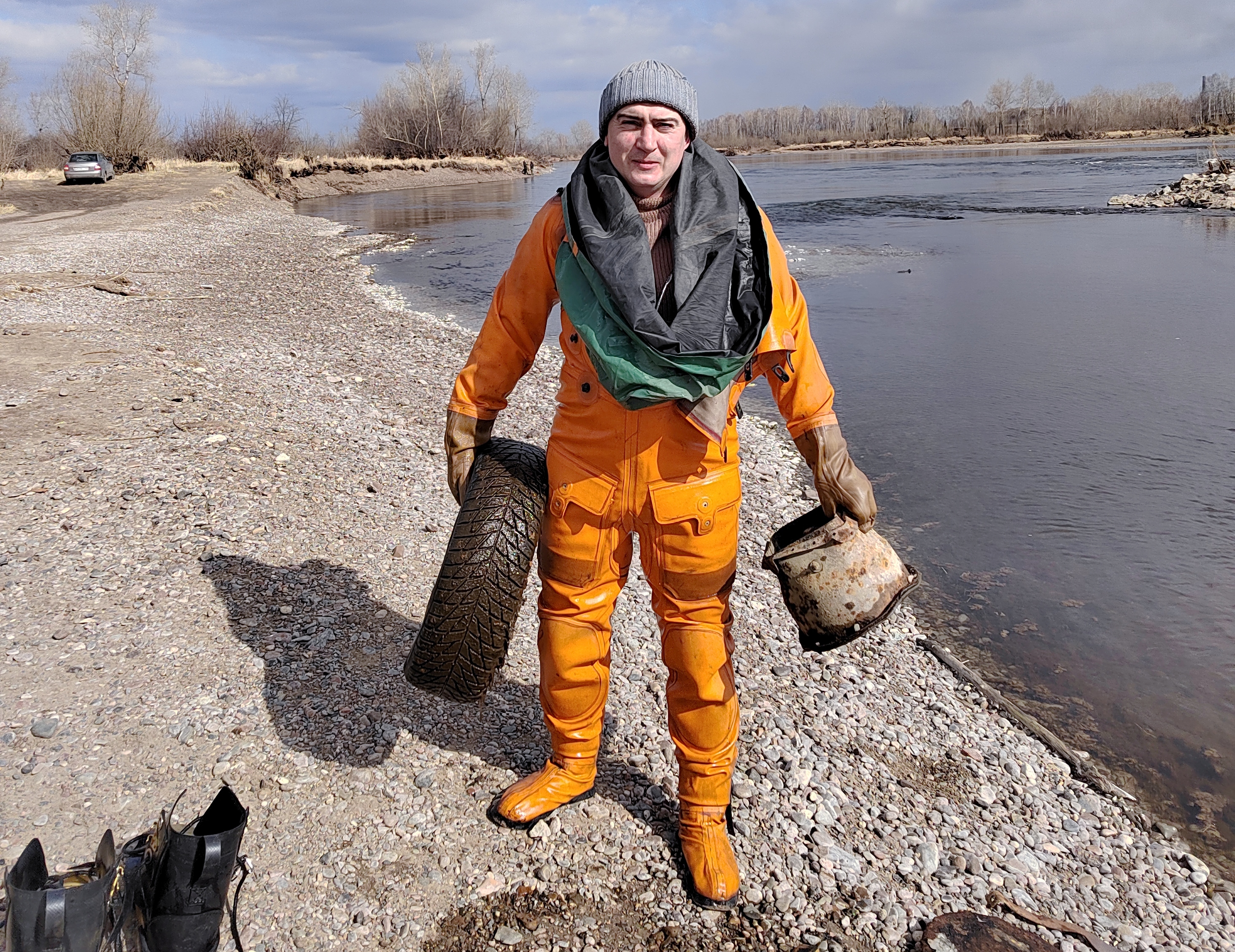 Покрышки и рыбацкие удочки — обычный «улов» водолазов красноярского водоканала. Фоторепортаж