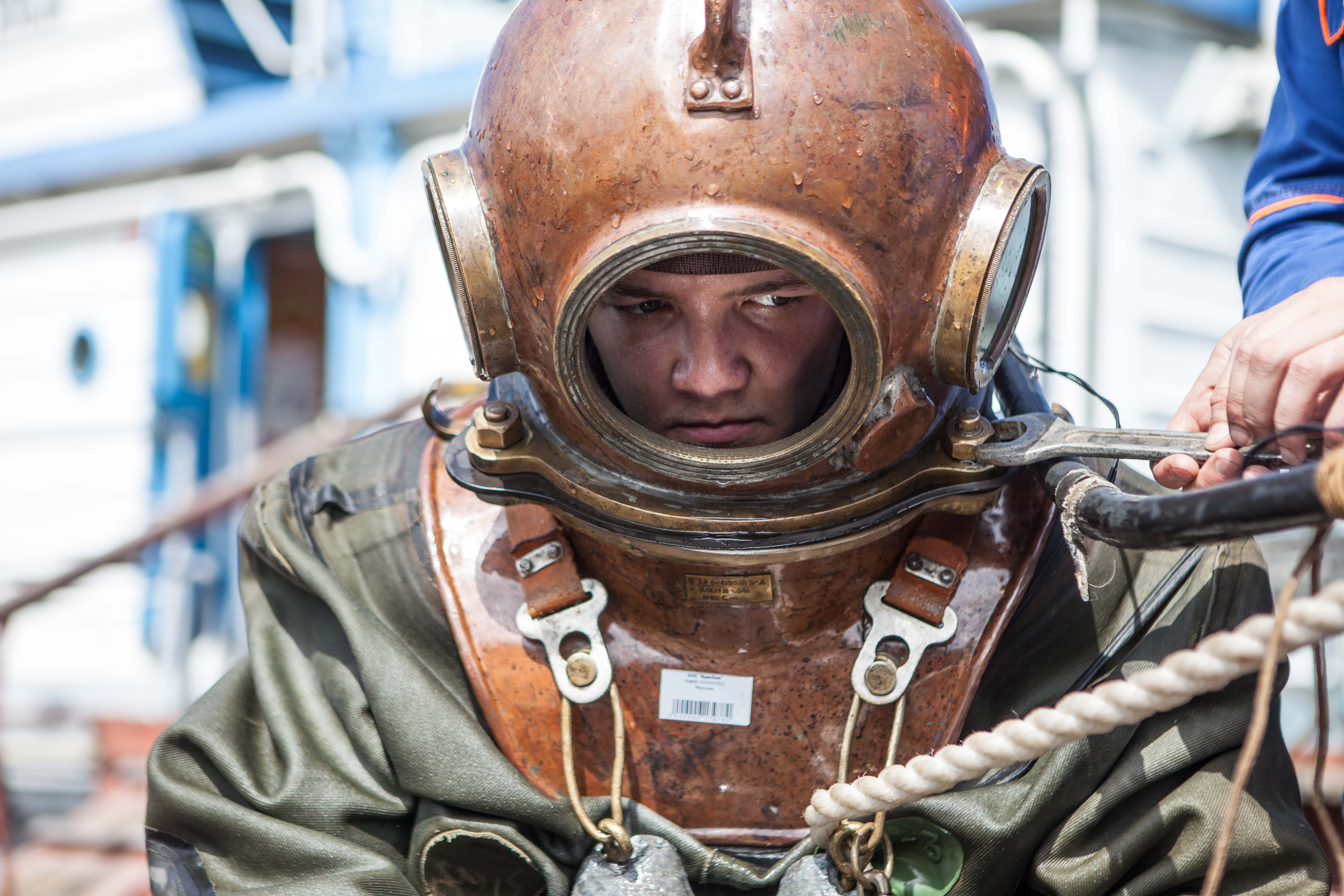 Сборы водолаза под воду длятся минимум полчаса. Перед самым погружением члены экипажа ещё раз очень пристально осматривают экипировку, заостряя внимание на каждой детали, проговаривая выявленные замечания вслух, чтобы все было идеально и безопасно.