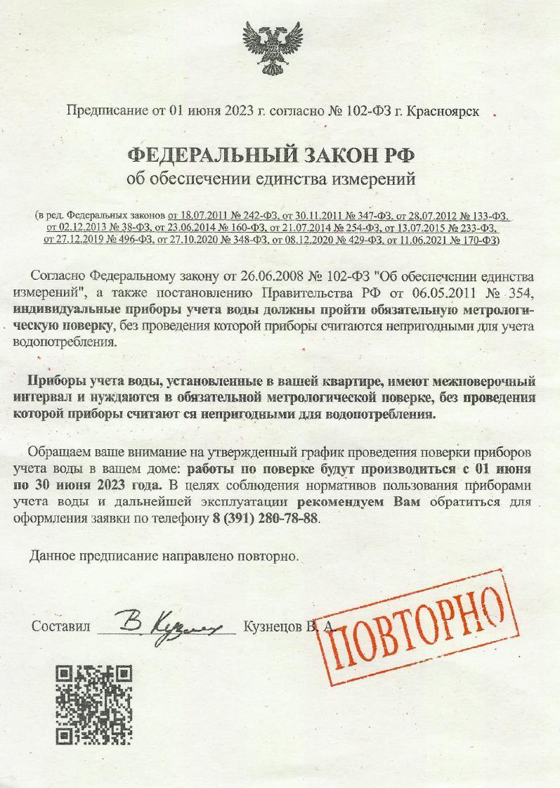 В почтовые ящики красноярцев вновь разбросали рекламные листовки о необходимости срочно поверить водосчетчики.