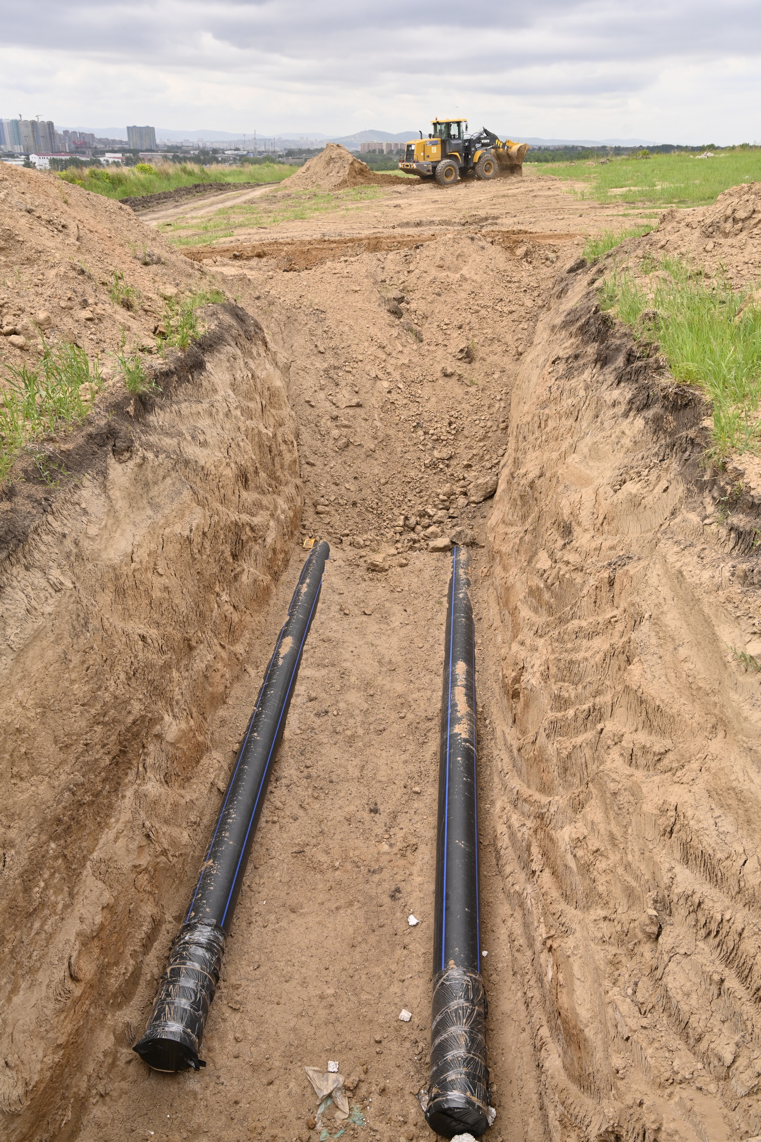 На фото: строительство сетей водоснабжения в Емельяновском районе открытым способом