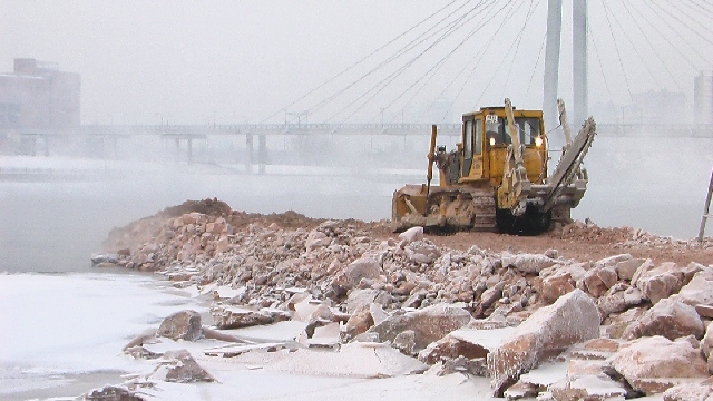 По словам первого заместителя генерального директора – главного инженера компании «КрасКом» Олега Якубовича за минувшие с начала строительства насыпи сутки было использовано 3 100 тонн скальных пород. Бутовый камень добывают одновременно на двух карьерах Цементного и Химико-металлургического заводов.