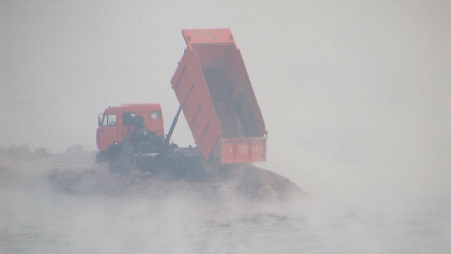 Бутовый камень добывают одновременно на двух карьерах Цементного и Химико-металлургического заводов. На строительстве временной перемычки задействовано 41 большегрузная машина, 19 единиц инженерной спецтехники и 10 обслуживающих автомобилей.