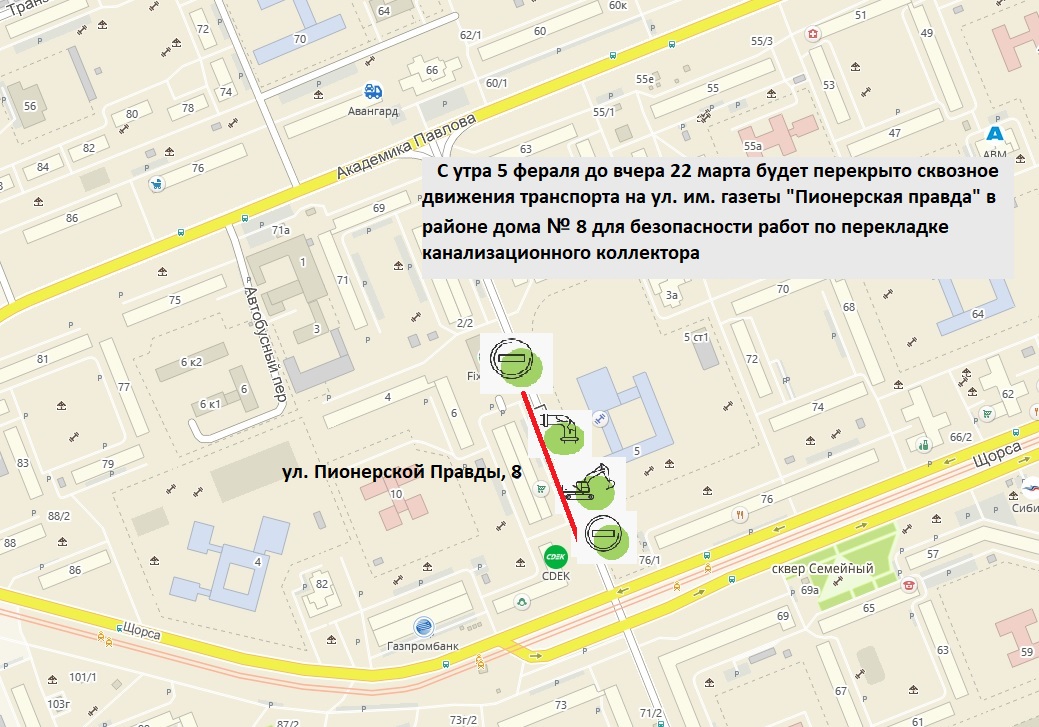 Закрытие сквозного движения транспорта на ул. им. газеты «Пионерская правда» в районе дома № 8 переносится с вечера пятницы, 2 февраля на утро понедельника, 5 февраля.