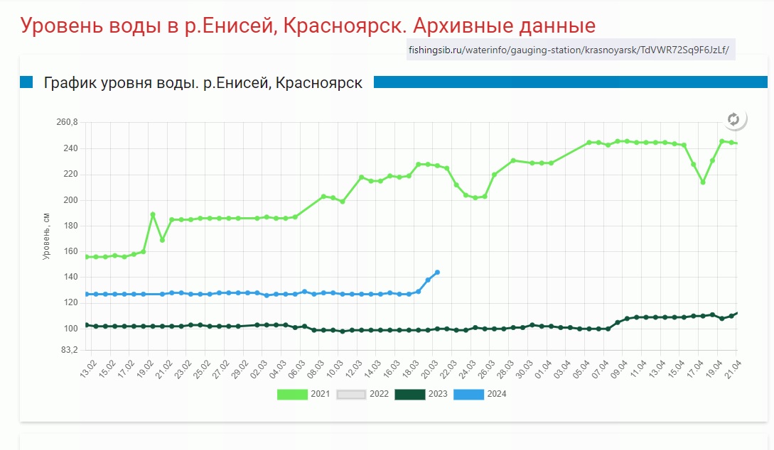 Для сравнения, в марте 2023 года этот показатель не превышал 110 см, а сброс составлял всего 2020 м3/с.