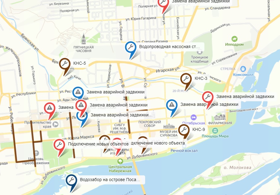 Работать будет не только КрасКом, но и застройщики, которые будут подключать новые объекты на ул. Дубровинского и в центральном парке, где идет масштабная реконструкция. Карта работ для подготовки к зиме системы водоснабжения и водоотведения Центрального и части Железнодорожного районов.