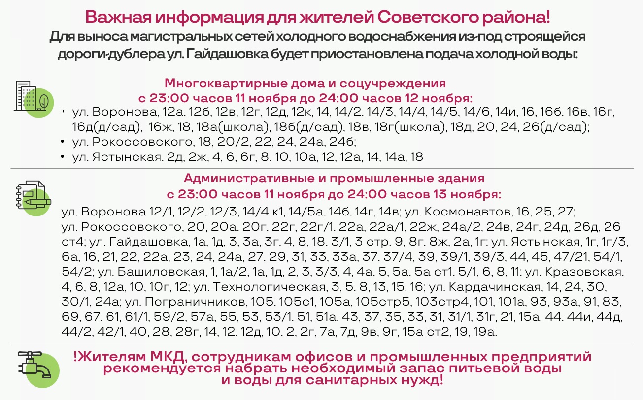 Важная информация для жителей домов на ул. Ястынская, ул. Рокоссовского и ул. Воронова!