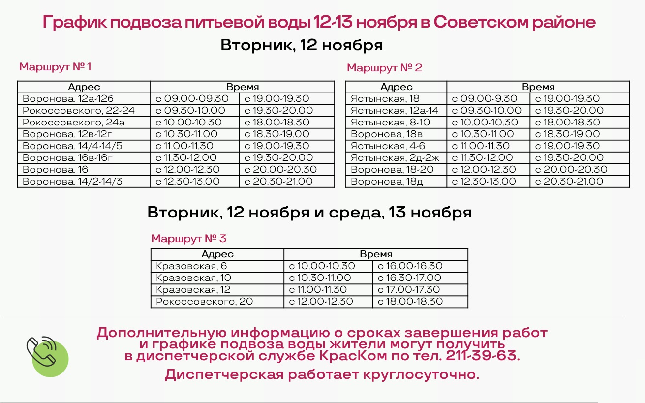 Жителям рекомендуется набрать необходимый запас питьевой воды и воды для санитарных нужд на один день 12 ноября.