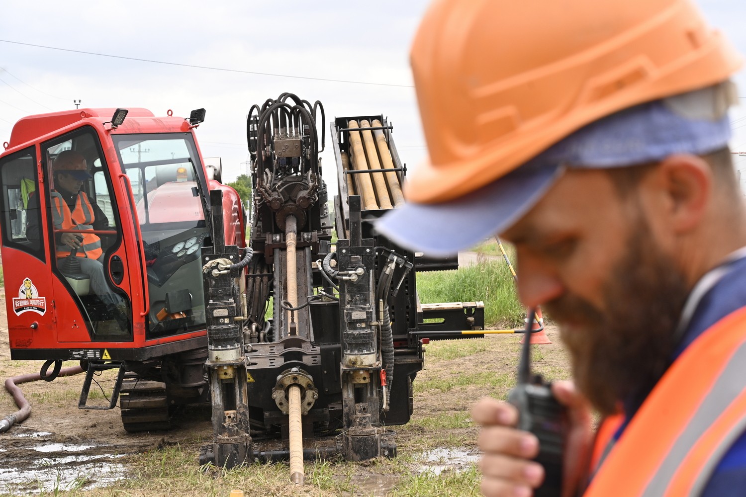 Новый водопровод в мкр. Энергетики, как и в большинстве заданий подрядчикам на перекладку, строят по «бестраншейной» технологии. Применение специальных установок горизонтально-направленного бурения (ГНБ) позволяет проводить работы без полного перекрытия автомобильного движения максимально сохраняя асфальтовое покрытие дорог.