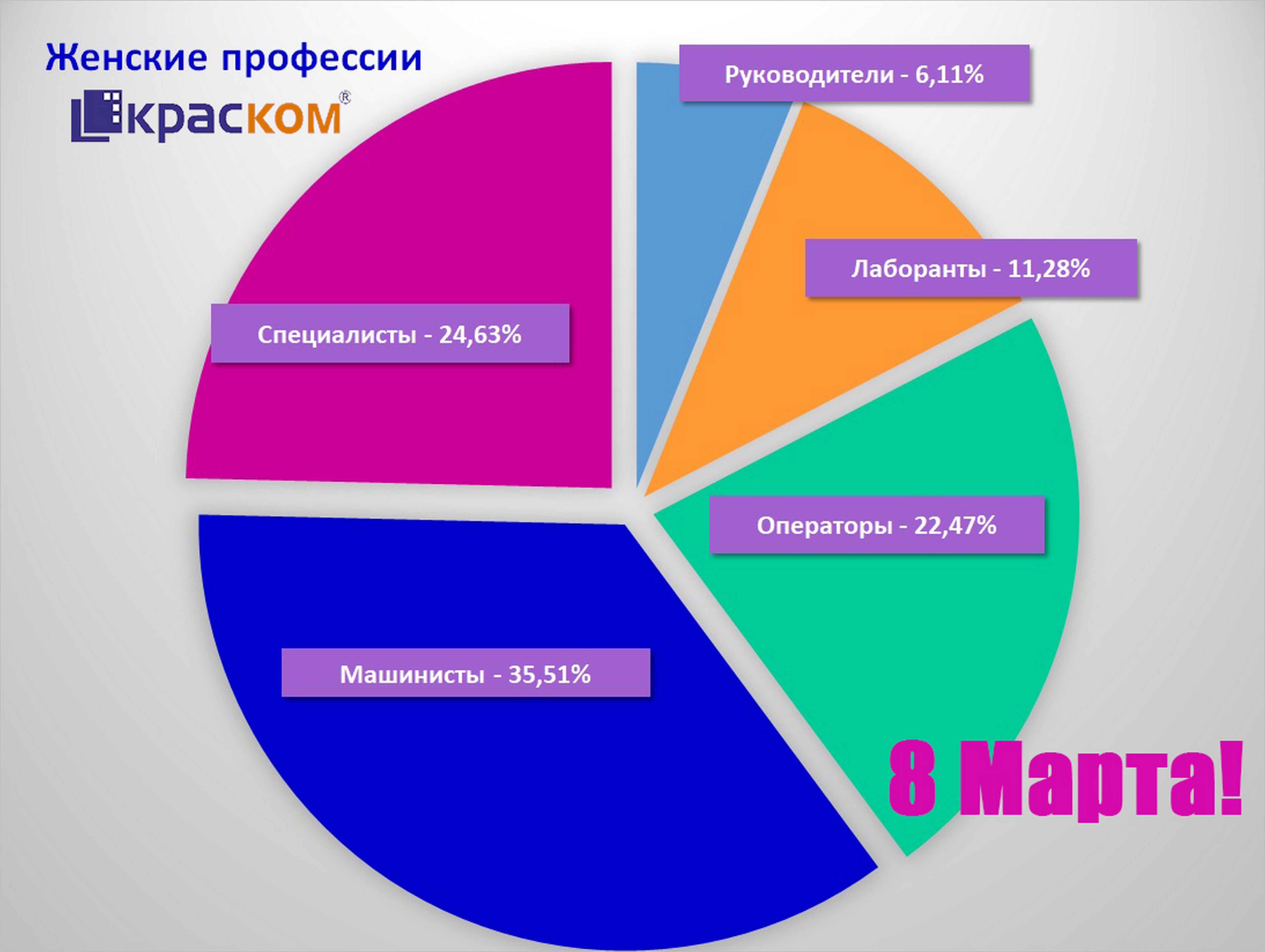 🌸 В преддверии первого праздника Весны — 8 Марта составили социальный портрет сотрудниц предприятия, на долю которых приходится всего лишь 38% трудового коллектива.