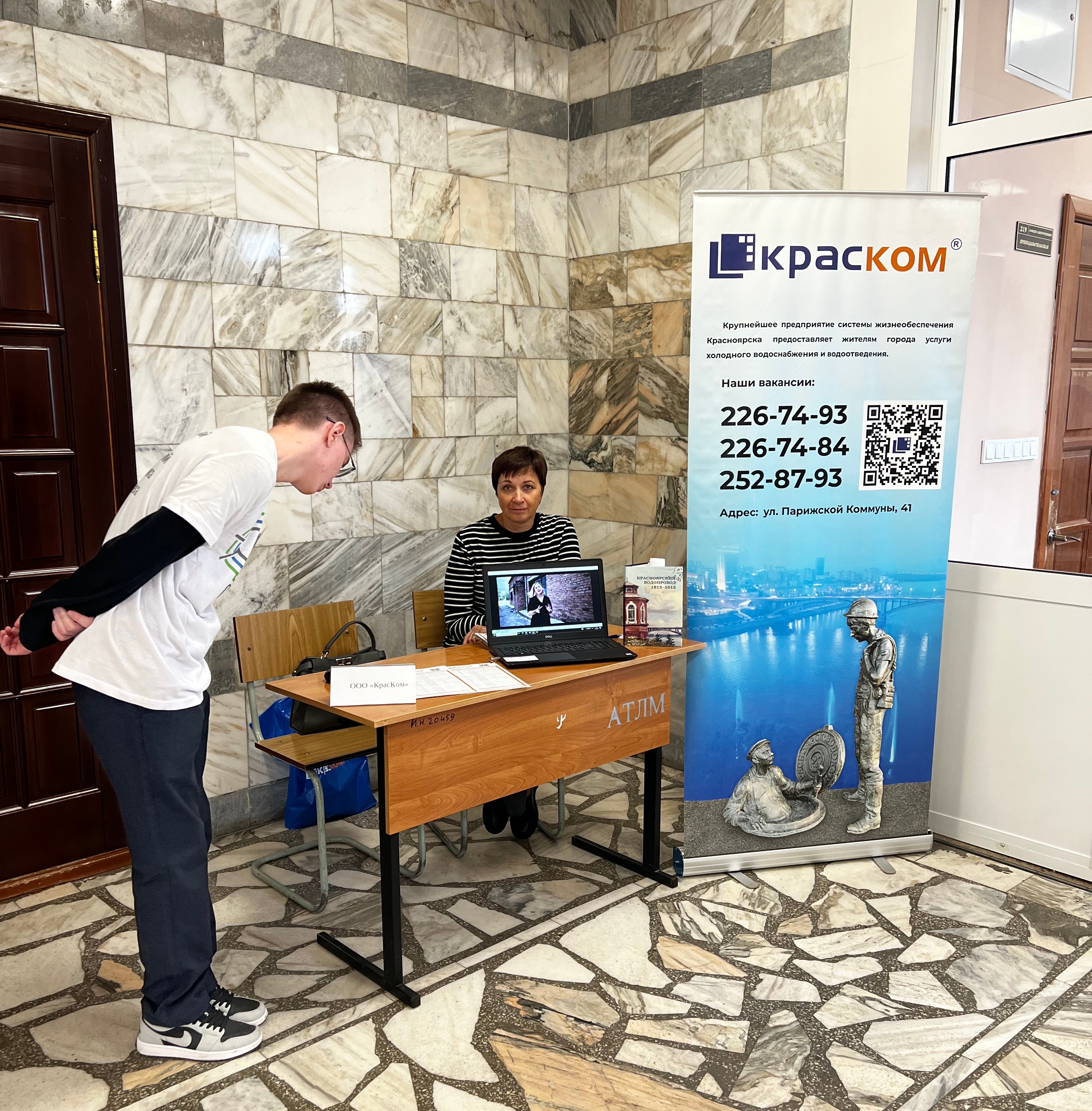 На «Неделе карьеры», которая проходит сейчас в Сибирском государственном университете науки и технологии имени академика М.Ф. Решетнева, специалисты отдела кадров КрасКом познакомили студентов сразу четырех институтов — химических технологий, информационных технологий и коммуникаций, лесных технологий, машиноведения и мехатроники — со специальностями, которые сейчас востребованы в сфере водоснабжения и водоотведения Красноярска.